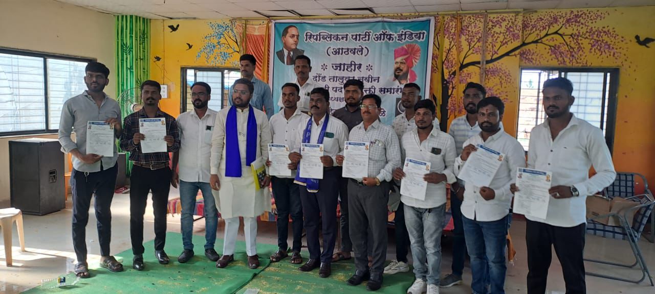 केडगाव प्रतिनिधी ….. आठवले गट रिपब्लिकन पार्टी ऑफ इंडिया च्या वतीने दौंड तालुक्यांमध्ये ग्रामीण भागात नवीन पदाधिकाऱ्यांची नुकत्याच नियुक्त्या करण्यात आलेले आहेत.