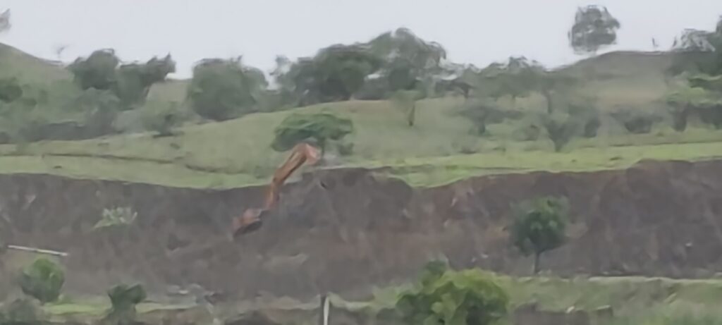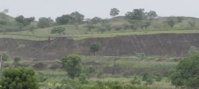 पोकलँड मशीनच्या साह्याने पोखरलेला परिसर