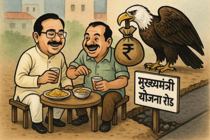 मुख्यमंत्री सडक योजनेतील कामांमध्ये गुणवत्ता शून्य असल्याचे वारंवार निदर्शनास येत असतानाही संबंधित अधिकाऱ्यांकडून केवळ ढोबळ तपासणीचे नाटक. तालुक्यात क्लब टेंडर पद्धतीचा अवलंब करून मोजक्याच ठेकेदारांना एकत्र करून त्यांना “गोंडस” नाव देऊन कामे देण्याच्या पद्धतीमुळे कमिशन मार्गाची नवी खूळ निर्माण केली आहे.