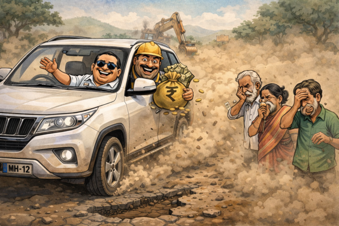दौंड तालुक्यात रस्ते विकासाच्या नावाखाली सुरू असलेला कारभार म्हणजे सरळसरळ दिशाभूल आणि लुटीचा महोत्सव ठरत आहे. कोट्यवधी रुपयांचे रस्ते कागदावर पूर्ण, प्रत्यक्षात मात्र कुठेच दिसत नाहीत. काही रस्ते “केले” असे दाखवले जातात, काही “होणार आहेत” या गोंडस शब्दांत अडकवले जातात आणि या सगळ्या खेळात कोट्यवधी रुपये गिळंकृत करणारे अधिकारी व ठेकेदार मात्र नामानिराळे राहतात.