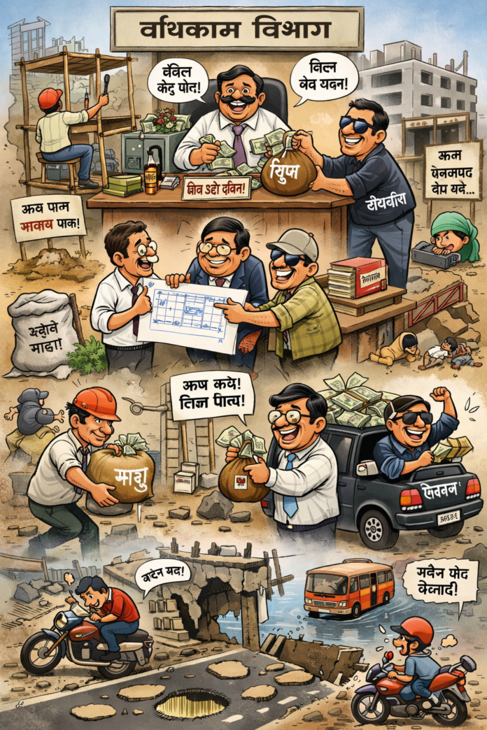 दहशतीच्या सावटाखाली रस्त्यांचा भ्रष्टाचार; बोलायचं असूनही नागरिक गप्प — तालुक्यात कोट्यवधींची कामे ‘तकलादू’