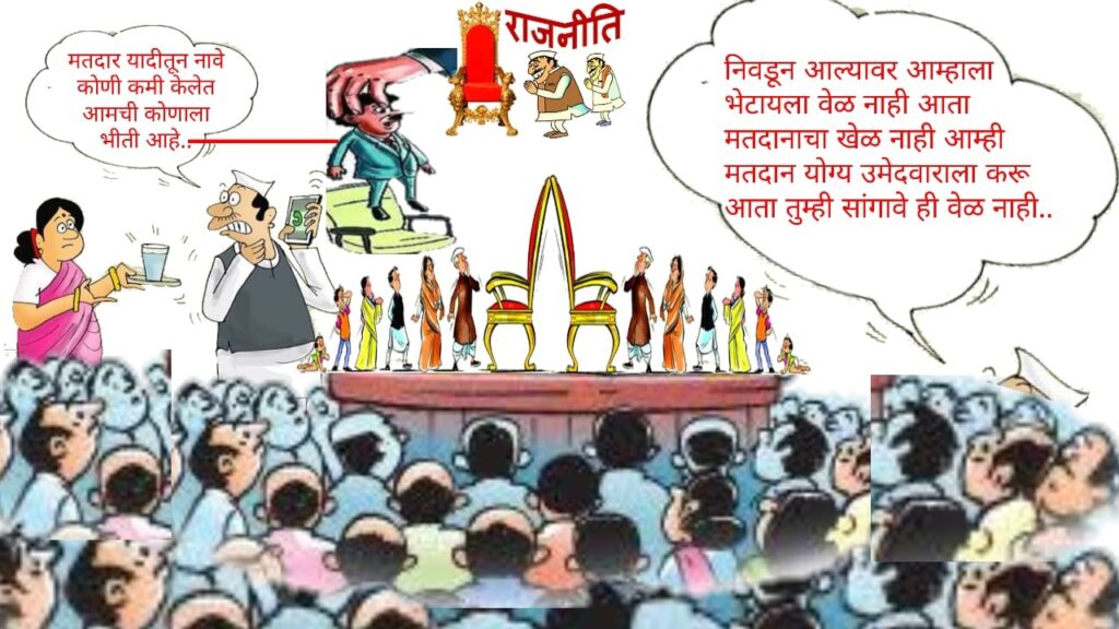 येणारी विधानसभा निवडणूक विजयी होण्यासाठी उभे राहणाऱ्या प्रत्येक उमेदवाराला शर्तीचे प्रयत्न करावे लागणार आहेत मतदारांचा विश्वास जिंकावा लागणार आहे मतदार आपलेसे करण्यासाठी वेळप्रसंगी वेगवेगळी आश्वासने आणि अमिशे सुधा देण्यास ते मागे पुढे पाहणार नाही आणि कमी पडणार नाहीत आणि हे सर्व करण्यासाठी आपले अंध भक्त त्यांनी कामाला लावले आहे .
