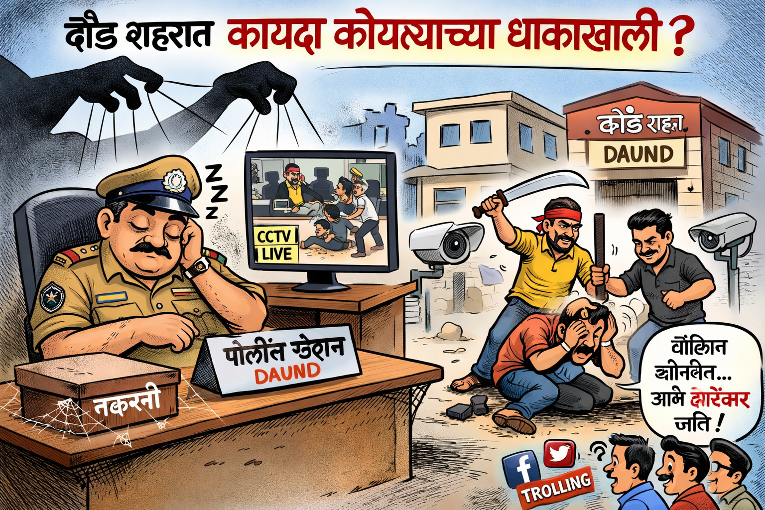 दौंड मधील नागरिक आता दबक्या आवाजात नाही तर उघडपणे पोलिस कार्यपद्धतीवर प्रश्न उपस्थित करत आहेत. सोशल मीडियावर आणि चौकाचौकात पोलिसांना ट्रोल केलं जातंय — कारण गुन्हेगारांना मोकळं रान आणि सामान्यांना असुरक्षितता हे चित्र तयार झालं आहे.
