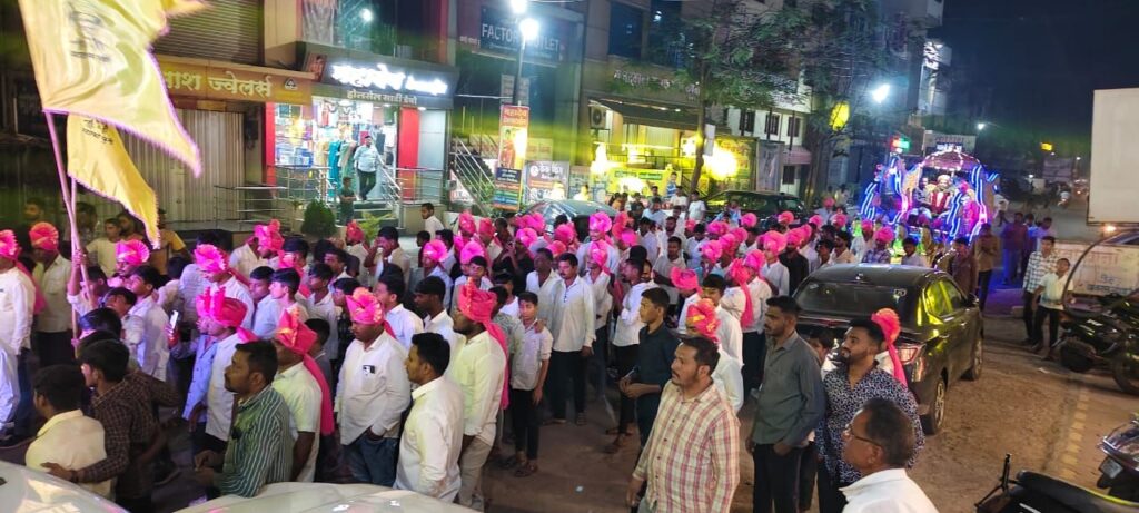 सायंकाळी सवाद्य मिरवणूक निघाली होती विद्युत रोशनाई केलेल्या रथामधून महात्मा ज्योतिबा फुले यांच्या पुतळ्याची मिरवणूक बाजारपेठेतून काढण्यात आली आकर्षक फेटे परिधान करून महात्मा फुले प्रेमी मोठ्या उत्साहाने या मिरवणुकीत सहभागी झाले होते